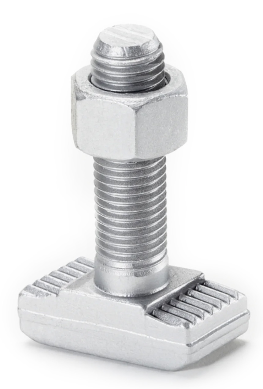 Kiskopultti kiinnityskiskoon. T-pultti voidaan asentaa kiskon C-uraan mistä kohdasta kiskoa tahansa.