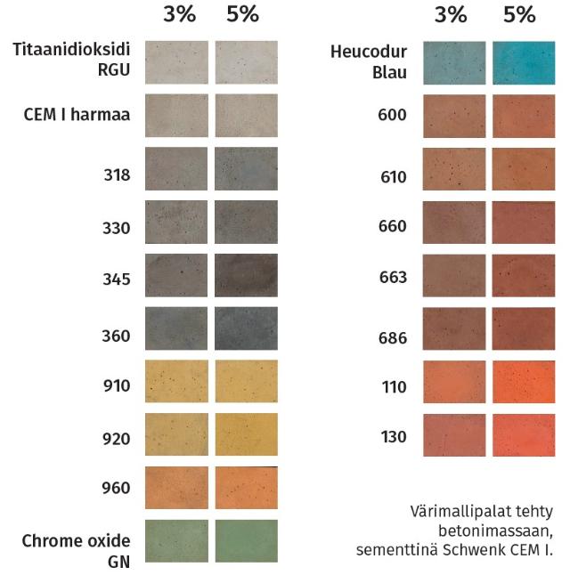 Väribetonituotteiden vuosien tarkkailu erilaisissa ilmasto-olosuhteissa on osoittanut, että epäorgaanisilla oksidipigmenteillä on erityisen korkea kestävyys sääolosuhteita, valoa sekä kemiallisia ja mekaanisia rasituksia vastaan.