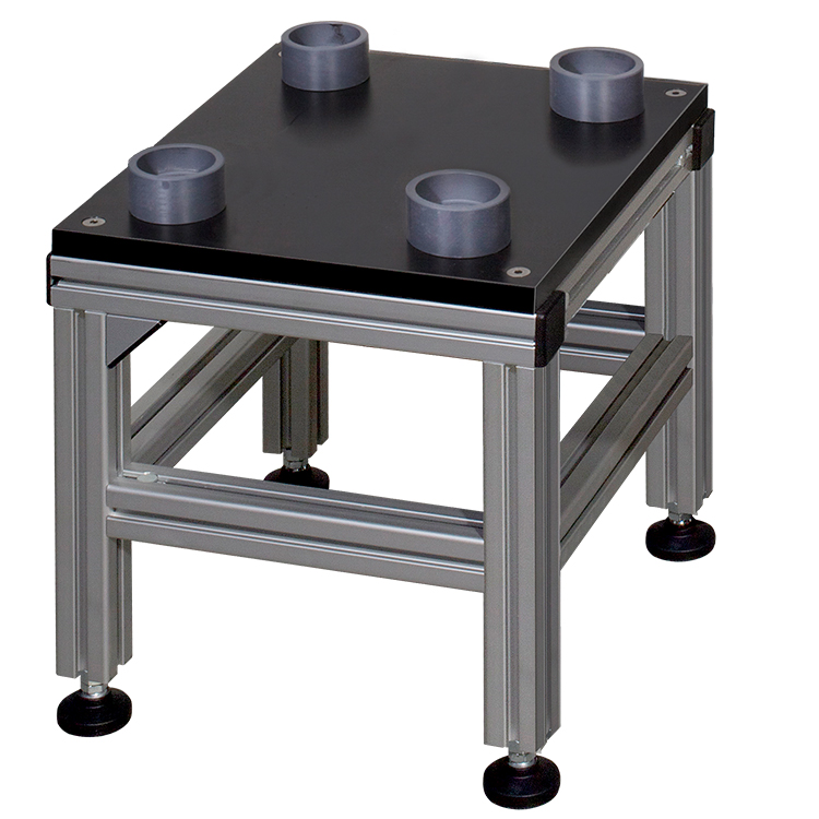 Tärypöytään saatavilla lisävarusteena tilattava jalusta, jossa on säädettävät jalat. Mitat 380 x 380 x 377 mm, paino 15 kg.