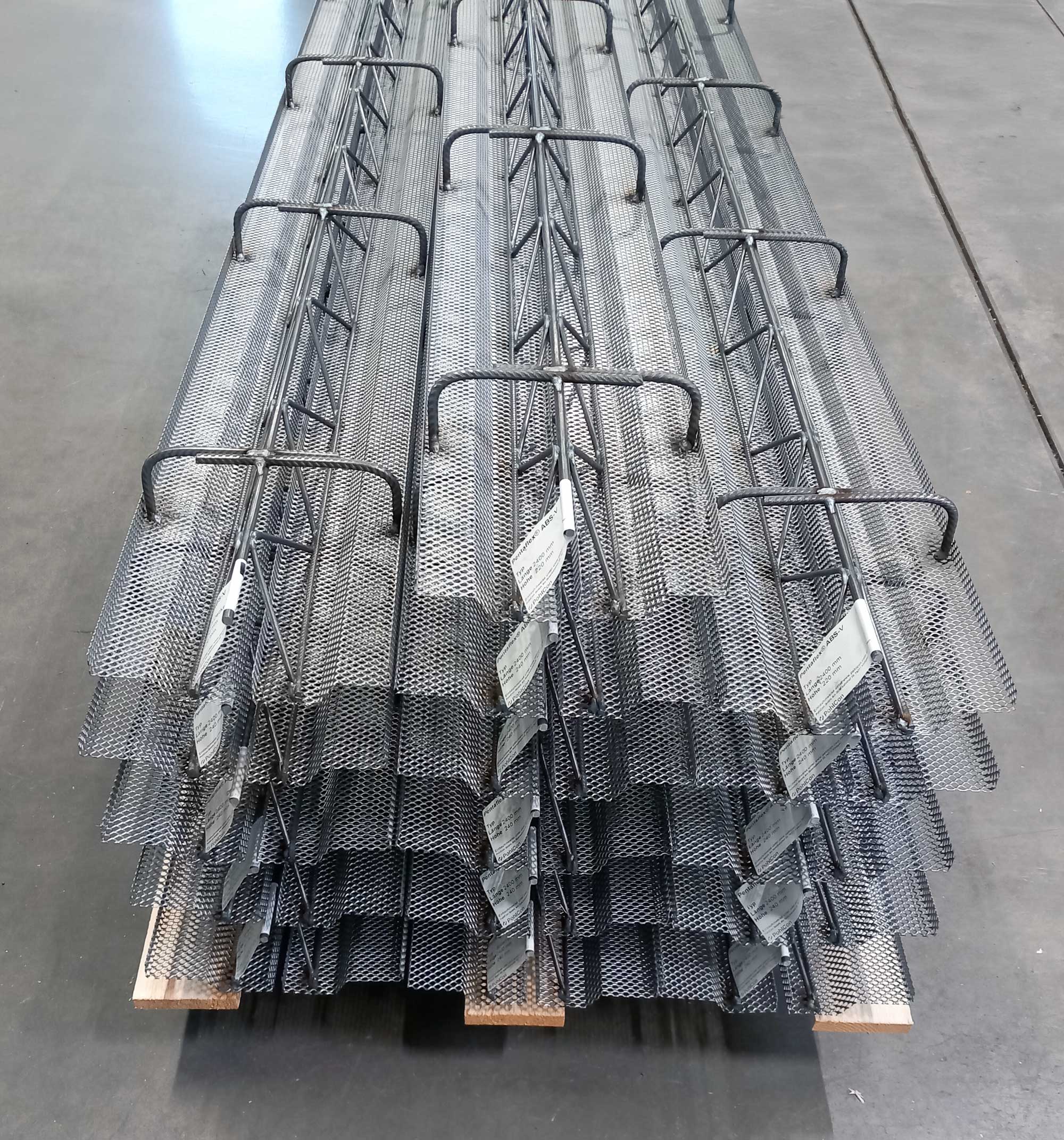 Seinään tarkoitettu ABS V -työsaumaverkkoprofiili on toteutettu lyhennetyllä ristikkopalkilla.