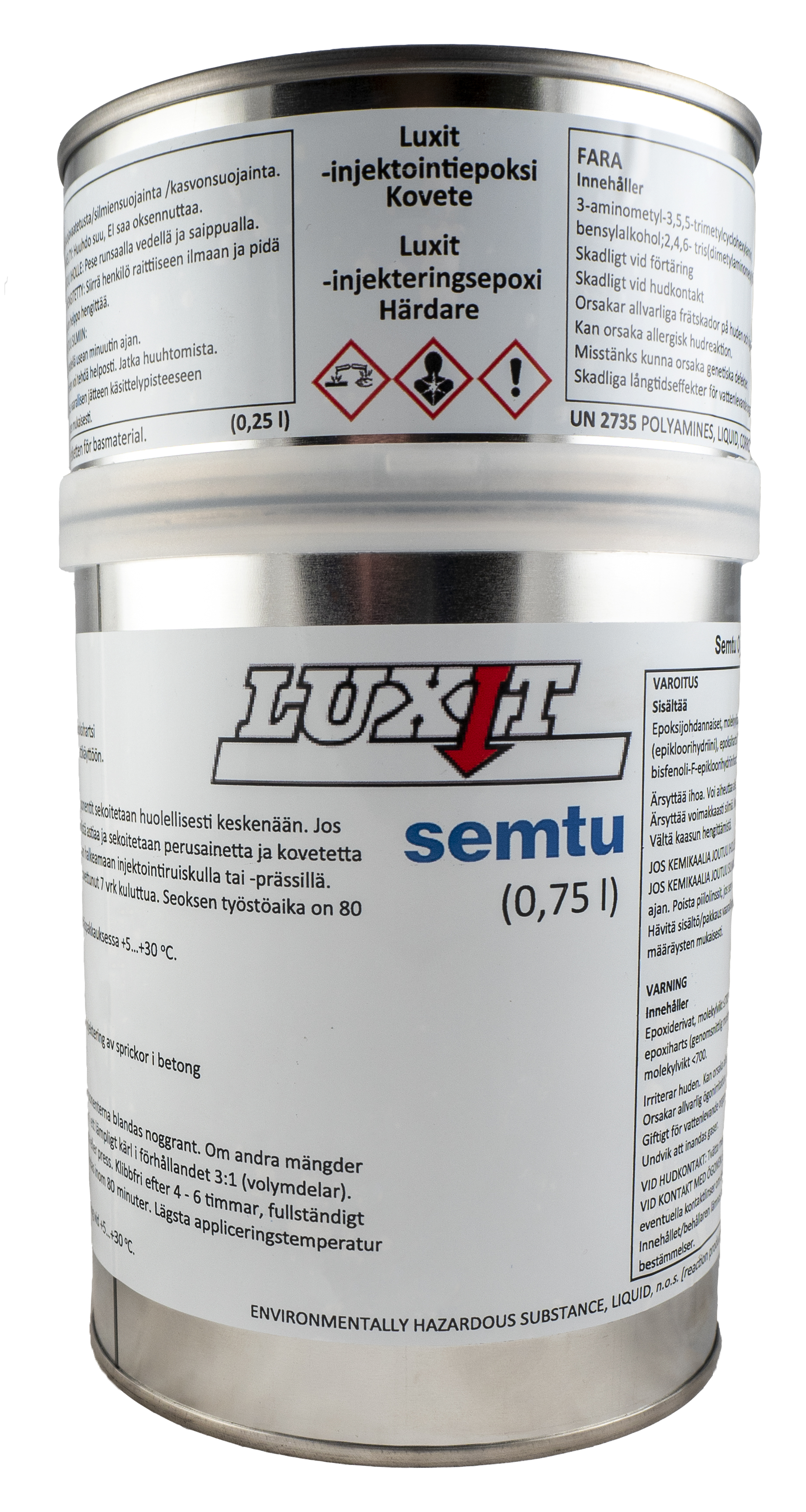 Luxit on erittäin matalaviskoosinen injektointiepoksi, jota käytetään halkeamien korjaamiseen betonissa, tiilimuurauksissa ja myös ankkurointitankojen injektointiin. Tuote soveltuu myös keraamisten laattojen tartuntainjektointiin. Injektointimateriaalin tulee olla mahdollisimman hydrofobinen eli hylkiä tuoreena voimakkaasti vettä, jotta se voi syrjäyttää veden kapillaarihuokosista ja injektointihartsin kovettumisen aikana tämän veden tulee haihtua. Erittäin matalan viskositeetin ansiosta Luxit tunkeutuu hyvin pieniin halkeamiin. Kovettuneena Luxit kestää hyvin kemiallisia rasituksia. |