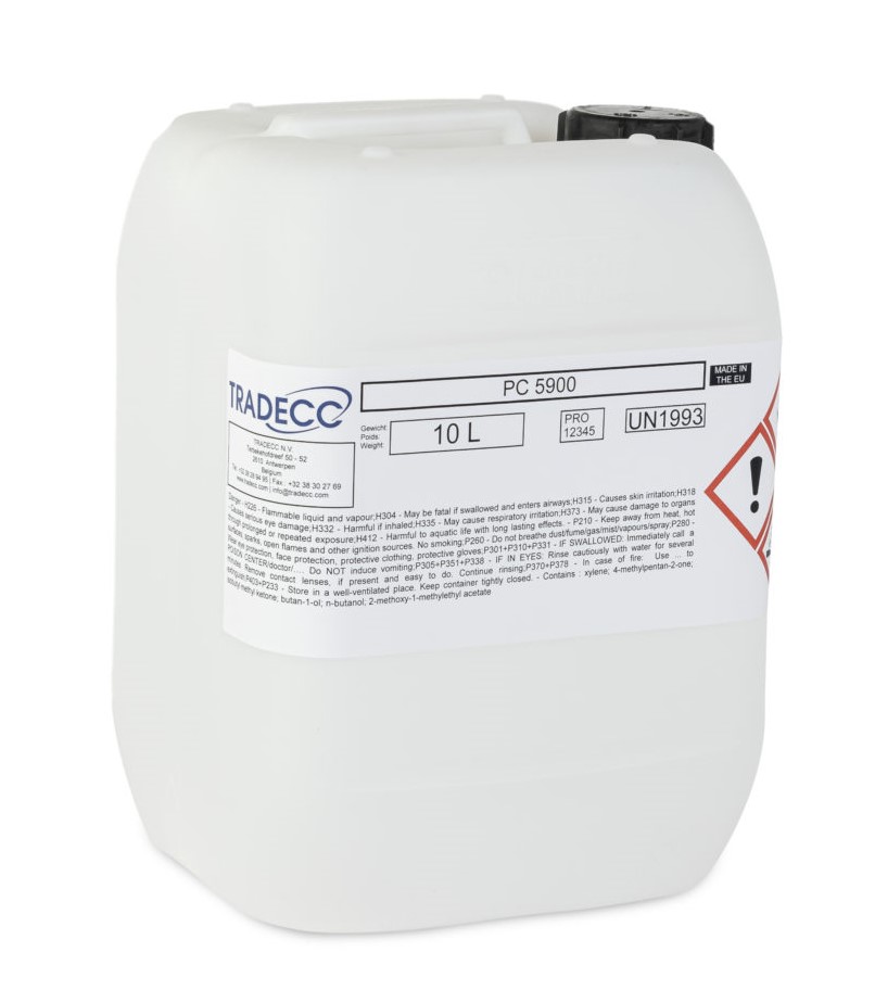 PC 5900 puhdistusaine on orgaanisten ja dipolaarittomien liuottimien seos, jolla on tietty höyrystymisnopeus. Vähentää aineiden tarttumista työkaluihin työskentelyn aikana. Soveltuu kovettumattomille epoksihartseille ja kovettimille. Syttyvä.
