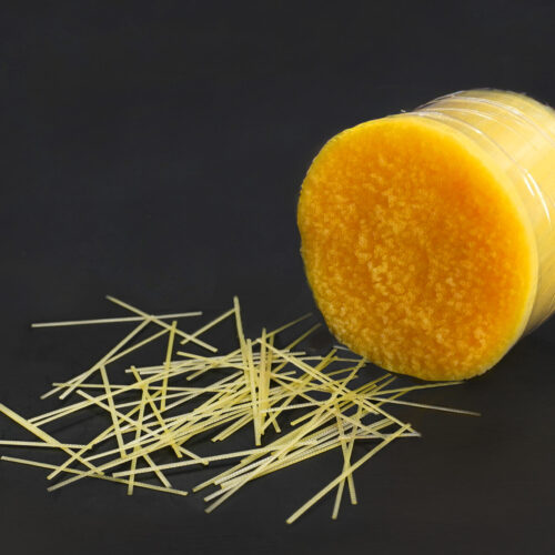Concrix HS35 toimitetaan vesiliukoisella muovilla kiekoksi teipattuna kuitunippuna. |